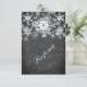 Este cartão de resposta de casamento LOOK em lousa de giz preta e branca festivo e moderno tem camadas de flocos de neve azuis claros e brancos que combinam com o convite de casamento de inverno mostrado abaixo. Seria perfeito para um casamento de inverno, casamento de Natal ou chá de noiva, uma festa de aniversário de inverno ou um baile de inverno ou outro evento. É mostrado aqui em papel básico. É facilmente personalizado com suas próprias informações. Há texto personalizável que você pode editar da maneira que precisar. ALÉM DISSO, observe que tudo será impresso como aparece no seu monitor. A Zazzle não editará nada para erros de digitação ou desalinhamento, etc., e eu não verei depois que você tiver feito o pedido. Se precisar de ajuda com sua redação, envie-me um e-mail ANTES de fazer o pedido. Se houver outros itens que você precise para tornar seu evento ainda mais especial, envie seu pedido para niteowl