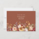 Este cartão de resposta de casamento apresenta um rico design floral em terracota e laranja queimada, ideal para casais que planejam uma celebração calorosa e inspirada no estilo boho. O layout equilibrado mantém as respostas claras, ao mesmo tempo em que adiciona detalhes botânicos românticos. Perfeito para casamentos de outono, locais rústicos e temas modernos e terrosos. A paleta de cores está alinhada com as tendências emergentes de 2025–2026, que enfatizam profundidade, calor e tons naturais. Totalmente personalizável para se adequar ao estilo e às palavras do seu evento. Combina perfeitamente com convites, faixas e acessórios de lembrança correspondentes.