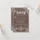 Aqui estão cartões de resposta de RSVP de casamento inspirados no estilo Gótico Vitoriano em marrom, apresentando ornamentos, pergaminhos, trabalho de pergaminho, uma faixa, uma moldura floral, fundo com padrão damasco e outros detalhes de estilo antigo, todos inspirados no período medieval Gótico e na era Vitoriana. Elegância e requinte em seu melhor. Você pode personalizar os campos de texto de amostra ao seu gosto.