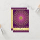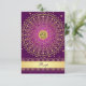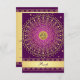 Este dramático cartão de resposta para casamento em roxo e dourado tem uma medalha central removível com aparência de gravação FAUX dourada com o deus hindu Ganesha nela, juntamente com um grande padrão de círculo de pergaminho dourado central com corações enfeitados e espirais detalhando estrelas e pontos dourados que se sobrepõem a um fundo roxo profundo com outra camada de espirais e pergaminhos roxos brilhantes finos que combinam com os convites de casamento mostrados abaixo. ****POR FAVOR, NOTE que nenhum dos elementos deste convite é elevado ou em relevo. Tudo é impresso plano. Este convite seria perfeito para uma cerimônia de casamento indiana, hindu, sânscrita ou muçulmana na primavera, verão, outono ou inverno, e também funcionaria bem para outros eventos formais que exigem classe e bom gosto. É mostrado aqui em papel básico. Se você quiser um papel mais pesado, sugiro o papel metálico gelo ou champanhe, que daria um brilho opalescente adorável. NÃO sugiro usar o papel dourado metálico, pois é um dourado muito escuro e