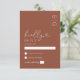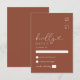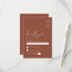 Crie uma estética moderna e sem esforço para o seu dia especial com o nosso Cartão de Resposta de Casamento Terracota Minimalista. Com as suas iniciais personalizadas no canto superior esquerdo, este cartão de resposta sofisticado evoca um charme atemporal e elegante que tornará o seu casamento inesquecível. Com um design limpo e nítido em laranja queimado, este cartão de resposta clássico adicionará um toque de elegância moderna ao seu dia especial.