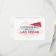 O icônico design do letreiro "Bem-vindo a Las Vegas" é apresentado na frente com a leitura "RSVP". A parte traseira tem área para nome do convidado "responder antes da data", opções de aceitação e refeição.