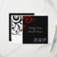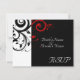 Cartão de resposta para combinar com o nosso convite de casamento preto e branco com redemoinho reverso vermelho, com fundo gráfico ousado de folhas em espiral. Personalize online com os detalhes do seu casamento.