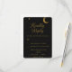 Este cartão de resposta de casamento celestial apresenta um fundo preto dramático com letras douradas cintilantes, lua crescente, sol radiante e acentos de estrelas espalhadas. O design elegante combina sofisticação clássica com um tema cósmico moderno, tornando-o o cartão de resposta perfeito para casamentos sob as estrelas, celebrações noturnas e eventos inspirados no céu. Totalmente personalizável com seus nomes, data de casamento e opções de refeição, este cartão de RSVP combina perfeitamente com convites, save-the-dates e cartões de agradecimento correspondentes.