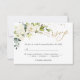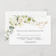 Este design apresenta uma ilustração de rosas brancas com folhagem vibrante colorida no estilo aquarela. O texto "rsvp" é escrito em um Script.