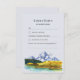A simplicidade encontra a beleza com esta placa RSVP minimalista. Apresentando um fundo aquoso macio de montanhas com ponta de neve, pássaros delicados e campos iluminados pelo sol, ele oferece uma maneira limpa e elegante para seus convidados responderem com facilidade.