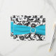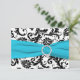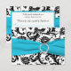Este cartão de resposta em damasco preto e branco tem uma fita impressa azul aqua e um broche de diamante impresso que seria perfeito para um casamento com tema aqua e preto. Alguns dos papéis podem alterar a cor do design, então use cautela se escolher o papel de feltro, pois pode amarelar mais do que o desejado. Eu NÃO usaria os papéis metálicos dourado ou prata, pois eles escurecerão o design sem adicionar nenhum brilho extra além do que você obteria com os papéis metálicos gelo ou champanhe. ALÉM DISSO, se você redimensionar o cartão, ou se você mudar as fontes, ou o tamanho da fonte, parte do design e/ou texto pode ser cortado. Tudo será impresso como você vê no seu monitor. Eu não verei seu convite, e a Zazzle NÃO irá corrigir nada (erros de digitação, desalinhamento, etc.). O texto e o papel são totalmente personalizáveis. ****POR FAVOR, OBSERVE que o pequeno cartão de resposta (3,5”x5,0”) é o ÚNICO cartão que cabe no envelope para o convite quadrado de 5,25”, se aplicável. Se precisar de ajuda com este convite, por favor me