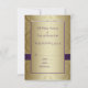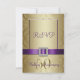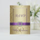 Celebre seu aniversário de casamento com estilo com este elegante conjunto de convite de aniversário de casamento de 50 anos com efeito dourado damasco, para o qual esta é a carta de RSVP. Estes convites elegantes são uma mistura maravilhosa de tradicional e moderno. A computação gráfica dá a esta carta um visual 3D, embora a fita de cetim roxa, o broche de ouro e diamante e o número 50 metálico dourado sejam apenas uma imagem impressa no cartão plano. Por favor, faça o pedido em papel branco simples, como mostrado, para deixar todos os detalhes do design destacarem-se. No verso, adicione o texto de RSVP da sua festa de aniversário de 50 anos. Este cartão NÃO vem com quaisquer enfeites. Tudo o que você vê é impresso em uma superfície de cartão plana. Gostaria de uma cor diferente de fita ou ajuda com o design do seu conjunto de convites