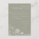 Suave, natural e elegantemente descomplicado, este cartão de resposta ao convite de casamento em verde-sage é projetado para complementar uma celebração de casamento refinada e inspirada na natureza. Com delicadas flores botânicas desenhadas à mão em um estilo de arte de linha minimalista, este cartão oferece um belo equilíbrio entre função e design.
