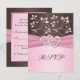 Este cartão de resposta floral rosa suave e marrom chocolate tem uma fita rosa com IMPRESSO e um par de corações unidos com brilho rosa e jóia diamante em FALSO IMPRESSO que combina com o convite de casamento mostrado abaixo. Se você precisar de outros itens correspondentes, por favor envie um email para niteowlstudio@gmail.com.
