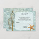 Convite de resposta de casamento com tema náutico ou de praia ou cartão de inclusão com dois cavalos-marinhos em um fundo de água com uma estrela-do-mar. Este cartão combina com vários convites de casamento e noivas.