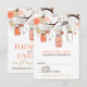 Convite de casamento com potes de pedra, flores, pássaros apaixonados e corda de coração - fofo e caprichoso, perfeito para casamentos de primavera e ao ar livre.
