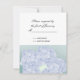A adorável hydrangea floral buquê, pouco azul, acentua este cartão de resposta. Papel de carta que os seus convidados ficarão entusiasmados em assinar e regressar. Encontre convites e guardanapos para combinar. Personalize como desejado.
