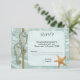Convite de resposta de casamento com tema náutico ou de praia ou cartão de inclusão com dois cavalos-marinhos em um fundo de água com uma estrela-do-mar. Este cartão combina com vários convites de casamento e noivas.