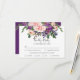 Projetado para combinar com a nossa coleção de casamento Chelsea, este cartão de resposta de casamento chic apresenta uma bela aquarela rosa, arranjo floral roxo ameixa e lavanda e letra manuscrita de pincel. Personalize-o com seus detalhes fácil e rapidamente, basta pressionar o botão personalizar para reorganizar e formatar o estilo e a colocação do texto. (c) The Happy Cat Studio