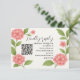 Este cartão de RSVP elegante complementa lindamente o conjunto de convites com um design de hortênsias rosa suave sobre um fundo branco limpo. A frente apresenta uma linguagem de amostra cuidadosamente colocada e um código QR escaneável, oferecendo uma maneira moderna e conveniente para os convidados responderem. As flores enquadram o conteúdo do cartão com charme romântico, deixando amplo espaço para texto personalizado.