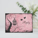 Este cartão de resposta de gaiola de pássaros rosa e preta e pássaros amorosos combina com o convite de casamento mostrado abaixo. O texto e o papel são totalmente personalizáveis. Se você precisar de outros itens correspondentes, por favor envie um e-mail para o seu pedido para niteowlstudio@gmail.com.