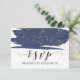Este cartão de pedido de música em aquarela azul-marinho e dourado é perfeito para um casamento elegante. Este design abstrato de noite estrelada apresenta um pincel dramático de aquarela azul-marinho sobreposto com belo brilho dourado falso. Construa sua lista de convidados do casamento e sua lista de músicas para a pista de dança de uma só vez! Este cartão de resposta de casamento convenientemente pergunta aos convidados se eles poderão comparecer ao seu casamento e também qual música os fará dançar.
