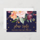 Este cartão de pedido de resposta de música floral de outono é perfeito para um casamento de outono. O design apresenta um buquê deslumbrante de flores cor de rosa, laranja pêssego e marsala burgundy com tipografia em folha de ouro falso e confetes. Monte sua lista de convidados do casamento e sua lista de músicas para a pista de dança de uma só vez! Este cartão de resposta de casamento convenientemente pergunta aos convidados se eles poderão comparecer ao seu casamento e também qual música os fará dançar.