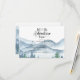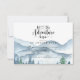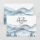 Cartão de inclusão de RSVP de casamento elegante e rústico com montanhas e cena de floresta em aquarela, apresentando árvores e montanhas azuis e verdes exuberantes com um texto em caligrafia: que a aventura comece. Para aqueles que amam um clima de sonho romântico e florestal para sua cerimônia e celebração. Para ver a coleção completa de materiais correspondentes para este design, visite: https://www.zazzle.com/collections/rustic_forest_mountain_wedding-119965625201006103