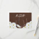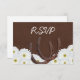Um cartão de resposta RSVP com o tema do país com um par de ferraduras rústicas e margaridas brancas de Gerbera. Personalize facilmente com seus detalhes!