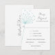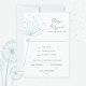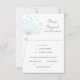 Um cartão RSVP de casamento com um tema rústico de flores desenhadas à mão para se assemelhar a um dandelion numa cor verde de vidro marinho, incluindo uma seleção de refeição de base para os convidados de carne bovina, galinha ou vegetariana.