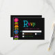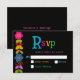 Adicione um toque vibrante à sua suíte de núpcias com esta moderna placa RSVP mexicana, projetada com um quadro floral colorido contra um fundo preto em negrito. Inspirados pela tradicional arte popular mexicana, os ricos e desenhados à mão florescem em tons de vermelho, amarelo, rosa e turquesa trazem energia festiva e encanto cultural para a design. O contraste impressionante melhora a legibilidade enquanto mantém uma sensação sofisticada e moderna. Perfeito para casais que procuram infundir seus detalhes de casamento com personalidade, herança e elegância viva.