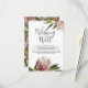 Elegante Cartão de Poço de Desejos de Protea Rosa Poeira e Eucalipto. Complete o conjunto do seu casamento com este cartão de poço de desejos lindamente desenhado, apresentando uma protea rosa poeira pintada à mão, folhagem suave e delicados acentos de eucalipto. A tipografia de roteiro fluído adiciona um toque romântico e sofisticado, complementando perfeitamente o seu tema de casamento boho, rústico ou inspirado na natureza. Desenhado com carinho para guiar os convidados com calor e elegância, este cartão é totalmente personalizável para se adequar ao seu dia especial.