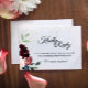 Este cartão de resposta do site de noivado “Celebração de Verão” inspira uma atmosfera floral tradicional e elegante para um casamento no jardim. Com flores rosa, azul real e burgundy cabernet, as ricas paletas de vermelhos e azul-marinho combinadas com brilho dourado complementam temas formais de primavera, verão e outono, criando uma experiência de celebração de casamento clássica e luxuosa.