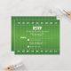Cartão de resposta de Bar Mitzvah de futebol verde e branco. Este design de cartão de resposta de Bar Mitzvah de futebol americano apresenta um fundo de grama verde que se assemelha a um campo de futebol. Há também marcações e números brancos que são encontrados em um campo de futebol. Este fundo de campo de futebol verde e branco é combinado com uma fonte de estilo esportivo. Este cartão de resposta de Bar Mitzvah de futebol funcionaria bem para um Bar Mitzvah temático da NFL ou do Super Bowl. Este cartão de resposta de Bar Mitzvah de esportes de futebol pode funcionar em qualquer estação e é uma ótima escolha para um menino que ama futebol americano.