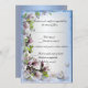 Bonito floral roxa com borboleta e fundo azul. Este belo RSVP de casamento/cartão de resposta está pronto para ser personalizado para o seu dia especial de casamento. Personalize a placa alterando o texto nos campos fornecidos frente e verso. Você pode alterar o estilo, o tamanho e a cor da fonte, bem como o tipo e o estilo do papel.