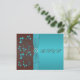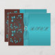 Este cartão-resposta floral em turquesa e marrom-chocolate combina com o convite de casamento mostrado abaixo. O texto é totalmente personalizável. ****POR FAVOR, OBSERVE que a fita e as joias são imagens impressas e não são reais. O papel também é personalizável. Se você precisar de outros itens neste design, como cartões de "Salve a Data", programas de casamento, cartões de fotos, cartões de número de mesa, cartões de recepção, álbum de casamento etc., por favor envie um e-mail para niteowlstudio@gmail.com. Os itens correspondentes existentes são mostrados abaixo.