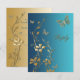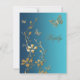 Este cartão de resposta de luxo com flores e borboletas em azul turquesa e dourado combina com o convite de casamento mostrado abaixo. Fica especialmente lindo no papel metálico champanhe como mostrado aqui. O texto e a escolha do papel são personalizáveis. Se você precisar de itens correspondentes neste design, envie um e-mail para niteowlstudio@gmail.com.
