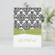 ****POR FAVOR, NOTE que a fita e as joias são imagens impressas e não são reais. Este cartão de RSVP em damasco verde oliva, preto e branco combina com o convite de casamento mostrado abaixo.