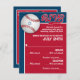 Este cartão de RSVP de Bar Mitzvah com tema de beisebol combina com os convites de Bar Mitzvah de beisebol nesta coleção. Ele tem uma bola de beisebol vermelha e branca no canto superior esquerdo com uma Estrela de David azul clara no centro que você pode remover se quiser. Este cartão de resposta de beisebol tem uma mistura de fontes que correspondem aos convites e o verso é vermelho, azul-marinho e branco com uma silhueta preta de um jogador de beisebol prestes a lançar a bola. As opções de refeição podem ser impressas no verso em branco ou você pode excluir as palavras se não precisar delas.
