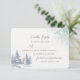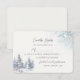 Coordene o conjunto do seu casamento de inverno com este cartão de resposta elegante, projetado com pinheiros em aquarela suave e uma borda delicada de flocos de neve. Os tons de azul gelado e marfim evocam uma cena de inverno aconchegante na floresta, enquanto fontes de letra estilosas e opções de preferência de refeição garantem que seja bonito e funcional. Ideal para casamentos rústicos, de cabana ou montanha nevada.