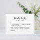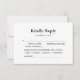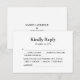 Crie uma impressão duradoura nos seus convidados com este design lindo e minimalista que complementa perfeitamente o tema do seu casamento. Criado com amor e atenção aos detalhes, este cartão de RSVP certamente adicionará um toque elegante ao seu conjunto de convites. A primeira coisa que chama a atenção é o elegante texto "Kindly Reply", lindamente exibido em uma fonte clássica atemporal. Ele define o tom e adiciona um toque de sofisticação para combinar com a ocasião. Nossos cartões de RSVP são projetados pensando na conveniência. Com opções claramente marcadas e amplo espaço para que os convidados anotem seus nomes e preferências alimentares, seus entes queridos não terão problemas para responder prontamente, tornando o planejamento do seu casamento absolutamente tranquilo. Torne as preparações do seu casamento sem estresse e garanta uma experiência tranquila tanto para você quanto para seus convidados. Peça seus cartões de RSVP de casamento hoje mesmo e deixe seus entes queridos saberem que sua presença é ansiosamente aguardada.