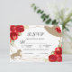 Cartão de RSVP para Chá de Noiva do Kentucky Derby. Rosas vermelhas e dourado.