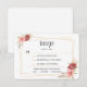 Este belo e elegante cartão de RSVP combina perfeitamente com o convite de casamento Gold Frame e Pink Floral! Atendendo às necessidades dos seus convidados, seja convidando uma única pessoa, um casal ou toda a família; seus entes queridos podem indicar o número de convidados que pretendem participar do seu casamento. Não há necessidade de inserir manualmente os nomes de todos os seus convidados; basta incluir este cartão com os seus convites de casamento, e eles podem preencher o(s) seu(s) nome(s) ao responderem. Você pode até pedir que eles escolham uma entrada do menu planejado para a recepção! Todo o texto é totalmente personalizável, então você pode alterar as opções de entrada ou editar o texto para perguntar sobre alergias alimentares.