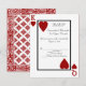 Cartões de confirmação de casamento legais para combinar com nossos convites de cartas de baralho, ótimos para um casamento em Las Vegas ou qualquer outro local. Característica de tema de cartas de baralho ou pôquer com rei e rainha de copas. Adicione seu texto personalizado para este convite de casamento personalizado do rei e rainha de copas de Las Vegas.