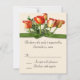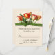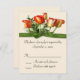 Cartão de resposta com buquê de buquê cor de laranja e rosa amarela e fita e arco verde esmaecidos. Escolha de acabamentos e cores. As placas vêm completas com envelopes. com
