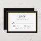 Preto e branco com um toque de cartão de resposta RSVP de casamento clássico de ouro. Bloco elegante e texto de script dentro de uma borda preta e sombreada de ouro. Preto para trás.