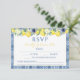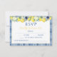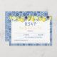 Limão azul amarelo brilhante com água com cartões de resposta RSVP de casamento mediterrânico e italiano de azulejo.