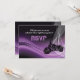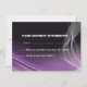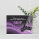 Cartão de resposta RSVP de casamento de motociclista de estrada roxo, com uma motocicleta em um fundo gradiente roxo e preto abstrato e uma malha branca. Alguns elementos cortesia de Clipartandfonts.com.