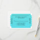 Placa de resposta RSVP de eventos para todos os propósitos, feita em um design de aparência brilhante de tíquete colorido turquesa, contra um fundo branco. O texto em preto está pronto para personalizar o seu evento. Excelente para casamentos, aniversários, aniversários e outros eventos especiais.