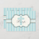 Um design de listras adorável num esquema de cor azul e creme. Adorado com uma cruz coordenada na frente, é apropriado para qualquer celebração sacramental, com texto personalizável nas costas. Faz um belo cartão de resposta RSVP para a família e amigos para a Primeira Comunhão do seu filho, Baptismo, Christening ou Confirmation e coordena perfeitamente com nossos convites correspondentes no mesmo design.
