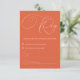 Este cartão de resposta RSVP lindamente projetado é o complemento perfeito para o conjunto de convites de casamento Verona Sunset. Com um fundo terracota quente e vibrante e uma elegante escrita branca, este cartão permite que seus convidados respondam facilmente, mantendo a estética romântica e coesa do seu casamento. É uma parte fundamental do seu conjunto de papelaria, garantindo um processo de planejamento suave e organizado.