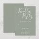 Este elegante cartão de resposta prata sálvia pode ser personalizado com letras elegantes em branco. Você pode adicionar informações adicionais, como escolha de menu no verso. Projetado por Thisisnotme©