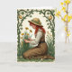 Concebido com uma cena campestre calma e romântica, o cartão mostra uma jovem ajoelhada em grama esmeralda salpicada de flores silvestres douradas, seu corpo posicionado ligeiramente fora do centro como se você a tivesse flagrado em um momento íntimo. Seus cabelos ruivos caem soltos debaixo de um chapéu de palha adornado com minúsculas flores brancas e laranja, e ela usa uma blusa creme com um avental marrom que se suaviza nos tons quentes ao seu redor. Ela olha para baixo com um foco terno e quase tímido, e suas mãos pairam sobre as flores como se estivesse cuidando delas da maneira como faria com alguém de quem gosta 💚. Um fundo creme suave mantém tudo delicado, enquanto uma moldura de videira arqueada se curva acima com folhas semelhantes ao trevo e pequenas flores marrom-amareladas, adicionando um toque do Dia de São Patrício ☘️. Qualquer texto de saudação caberia perfeitamente no espaço creme aberto acima dela, definido em uma cor verde médio que combina com as folhas sem sobrecarregar a ilustração. A iluminação permanece difusa e beijada pelo sol, trazendo à tona as texturas na aba do chapéu, as dobras da blusa e a aparência avelud
