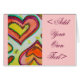 Detalhe de pintura de dois corações da pintura "Laugh". Os corações são amarelo, laranja, pêssego, rosa, magenta, e vermelho. A mídia é aquosa com brilho de vidro.